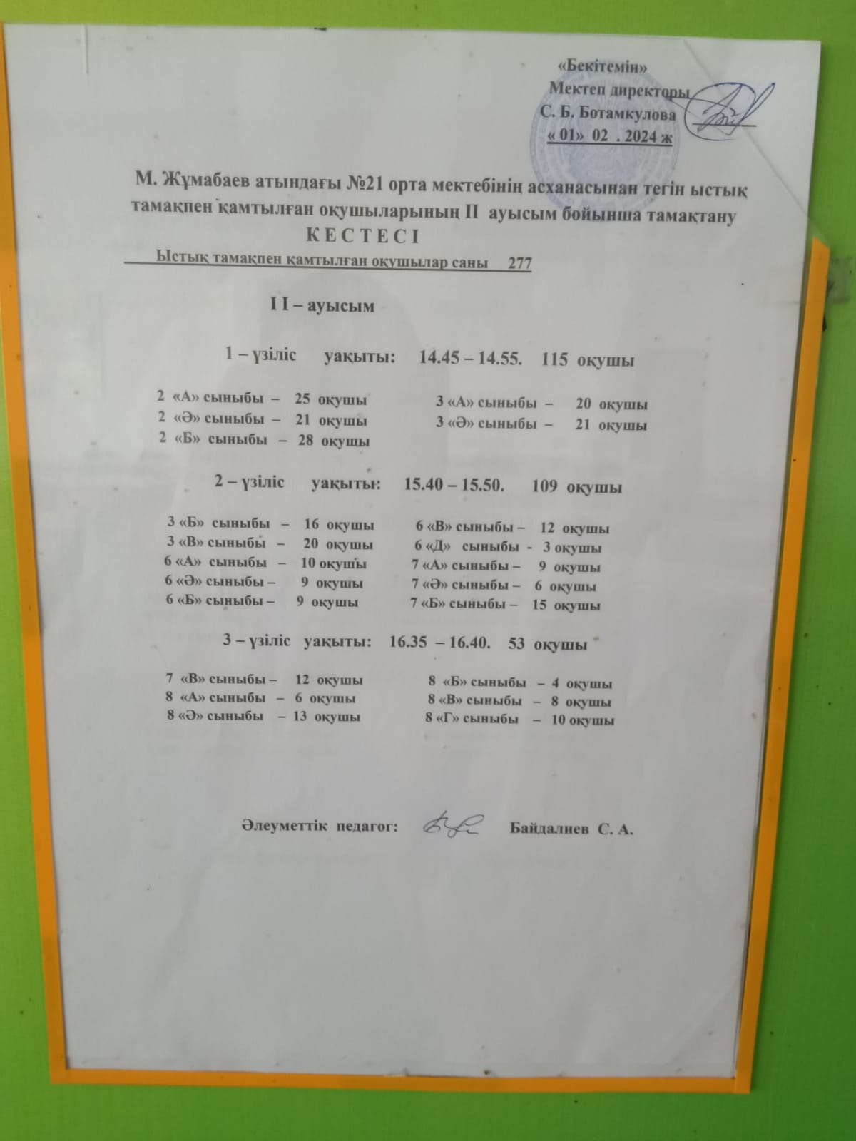 Мектеп асханасындағы 2 ауысымдағы окушылардын кіру кестесі » Жамбыл облысы Тараз қаласы білім бөлімінің "Мағжан Жұмабаев атындағы № 21 орта мектеп" коммуналдық мемлекеттік мекемесі