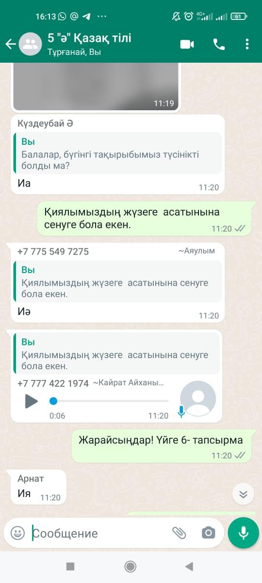 26 қаңтар 2022 0 1 2 3 4 5 26.01.2022 жылы 5 "Ә" сыныбымен Атаэва Эльмира "Өнер - білім бар жұртта" тақырыбында ватсап желісі арқылы ашық сабақ өткізді