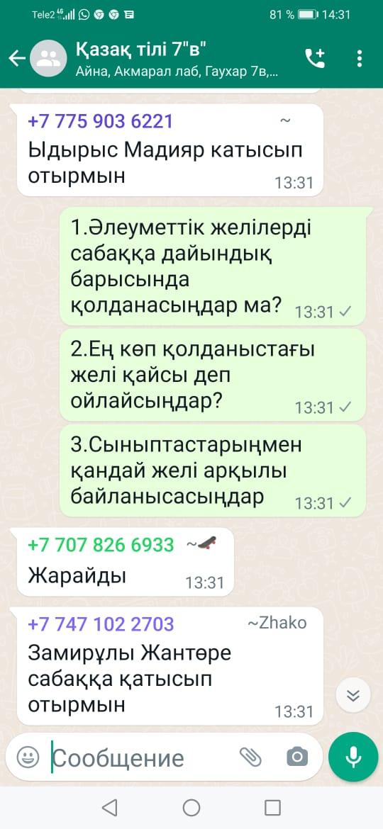 28 қаңтар 2022 0 1 2 3 4 5 Көшек Г. " Компютердің адам ағзасына әсері және ғаламтордың зияны" тақырыбында 7 "В" сыныбымен ашық сабақ өткізді