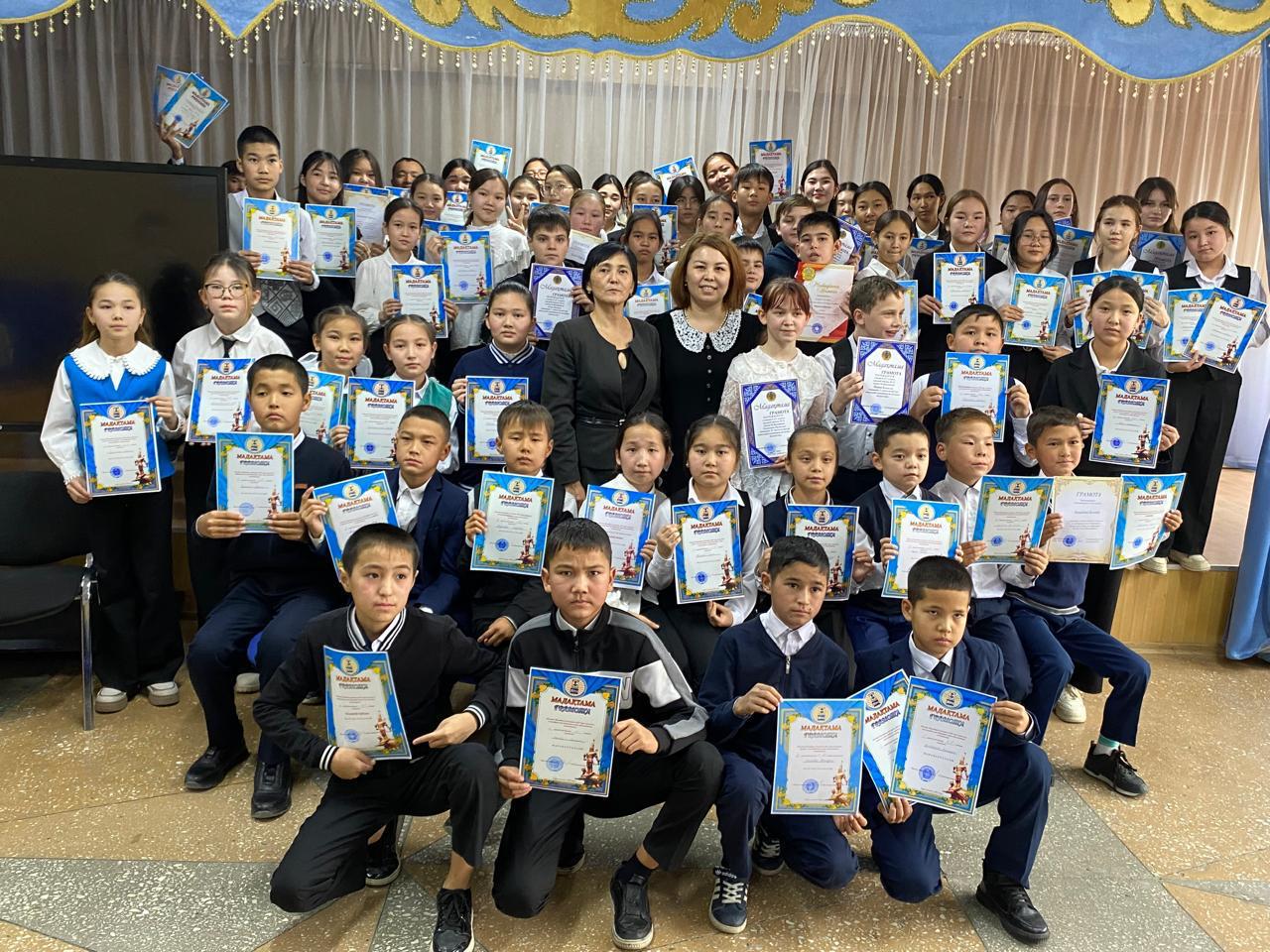Соның ішінде мектеп бойынша 28 оқушы жеңімпаз атанып, оның ішінде 11 оқушы қалалық олимпиадаға жолдама алды. Мектепшілік олимпиаданың жеңімпаздары мектеп директоры С.Ботамкулованың атынан грамоталармен марапатталды.