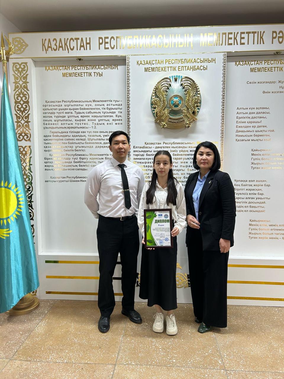 М. Жұмабаев атындағы №21 орта мектебінің 8 "В" сынып оқушысы Сахый АружанОблыстық кезеңде “Мен зерттеушімін” экологиялық байқаудан ІІ орынды иеленді. Жетекшісі Джуманбеков Дәуренбек Маратұлы
