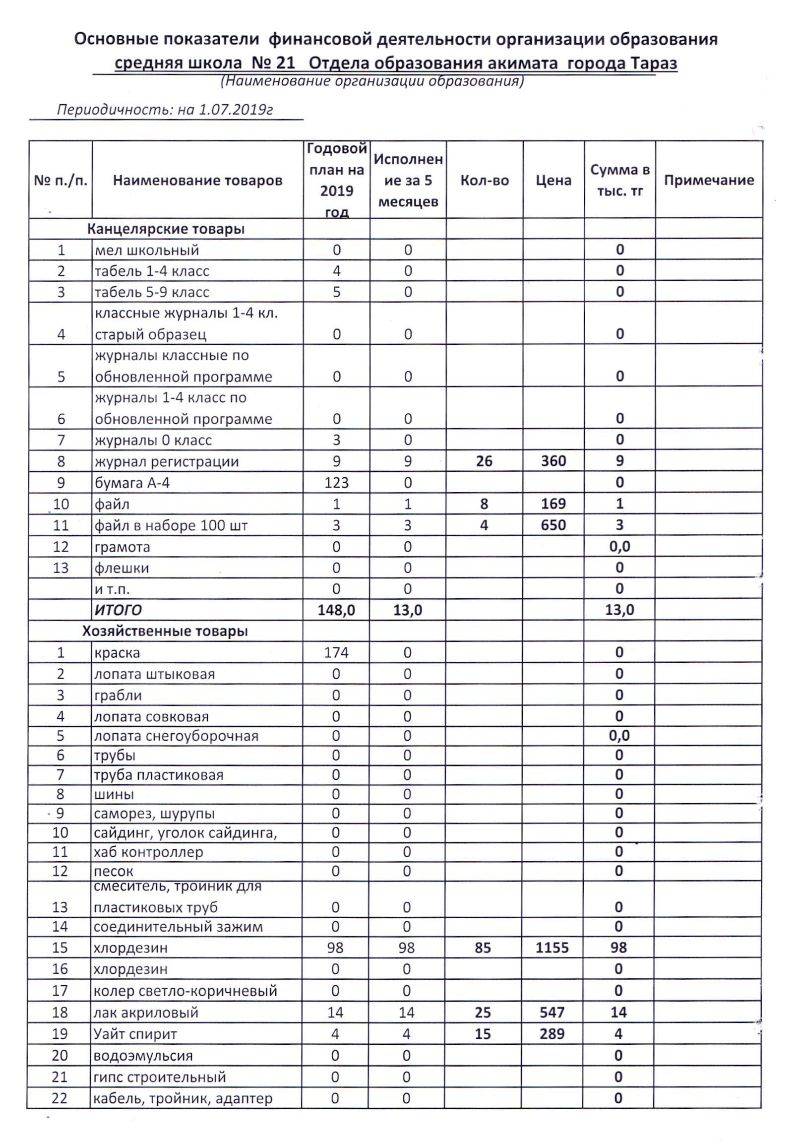 Основные показатели финансовой деятельности организации образования » Жамбыл облысы Тараз қаласы білім бөлімінің "Мағжан Жұмабаев атындағы № 21 орта мектеп" коммуналдық мемлекеттік мекемесі