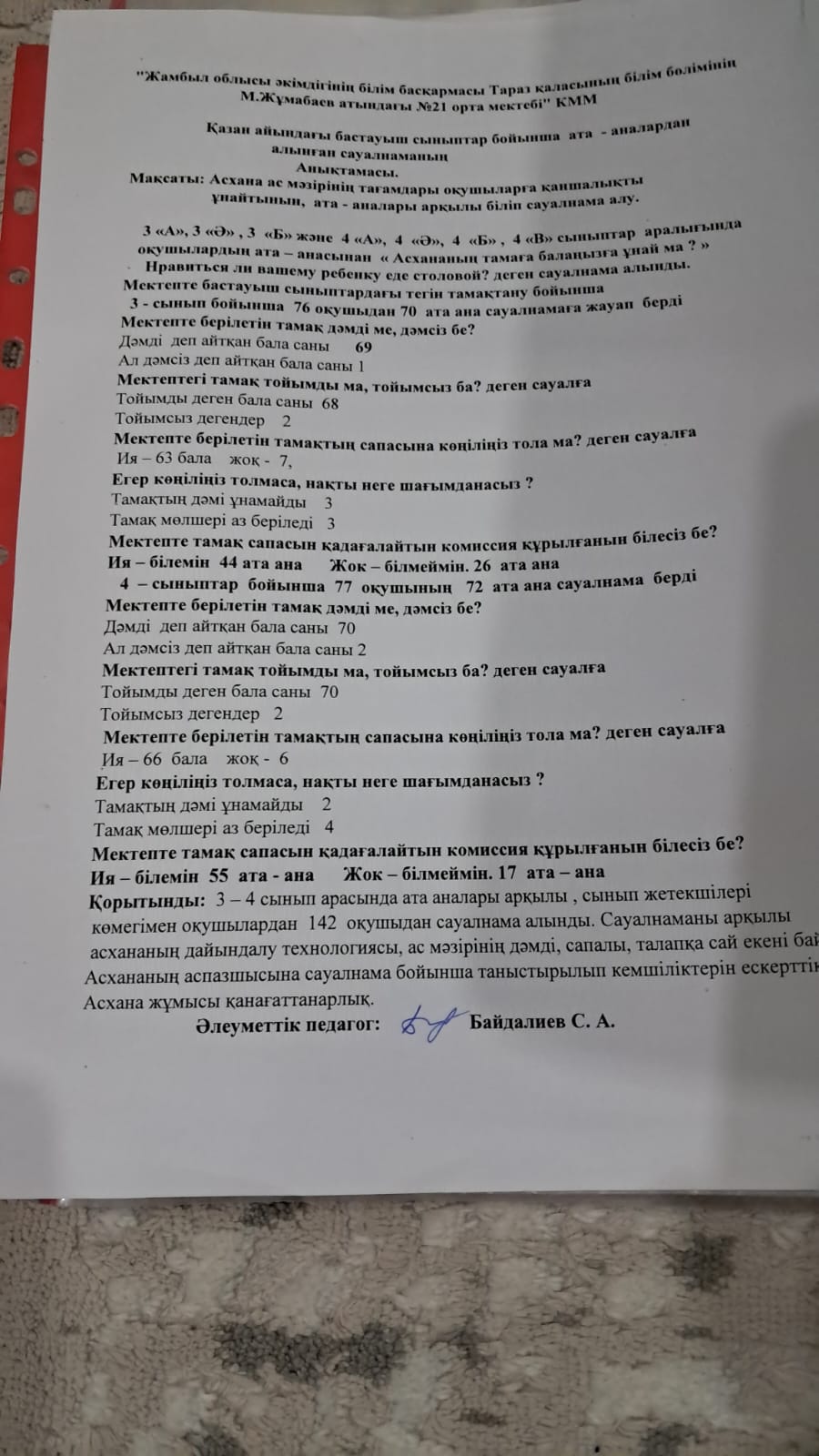 24 қазан 2024 Ата-аналардан Асхананың тамағы балаңызға ұнай ма? деген сауалнаманың қорытынды анықтамасы.