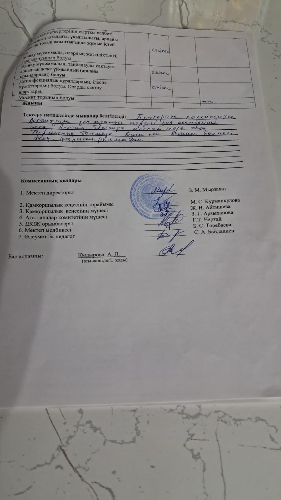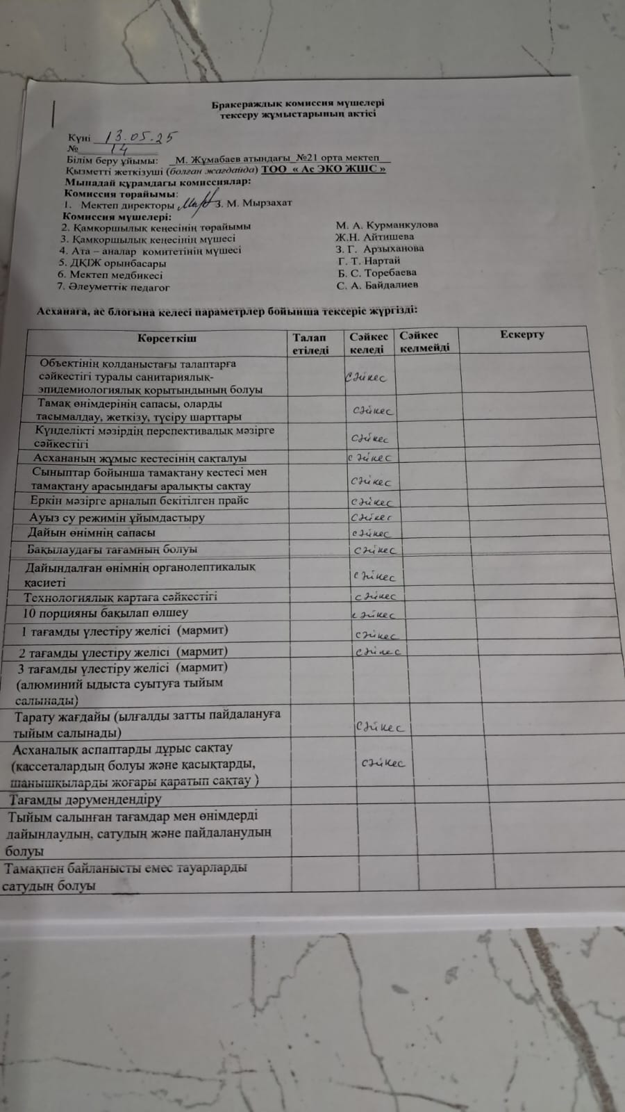 Бракераждық комиссия мүшелері тексеру жұмыстарының актісі » Жамбыл облысы Тараз қаласы білім бөлімінің "Мағжан Жұмабаев атындағы № 21 орта мектеп" коммуналдық мемлекеттік мекемесі