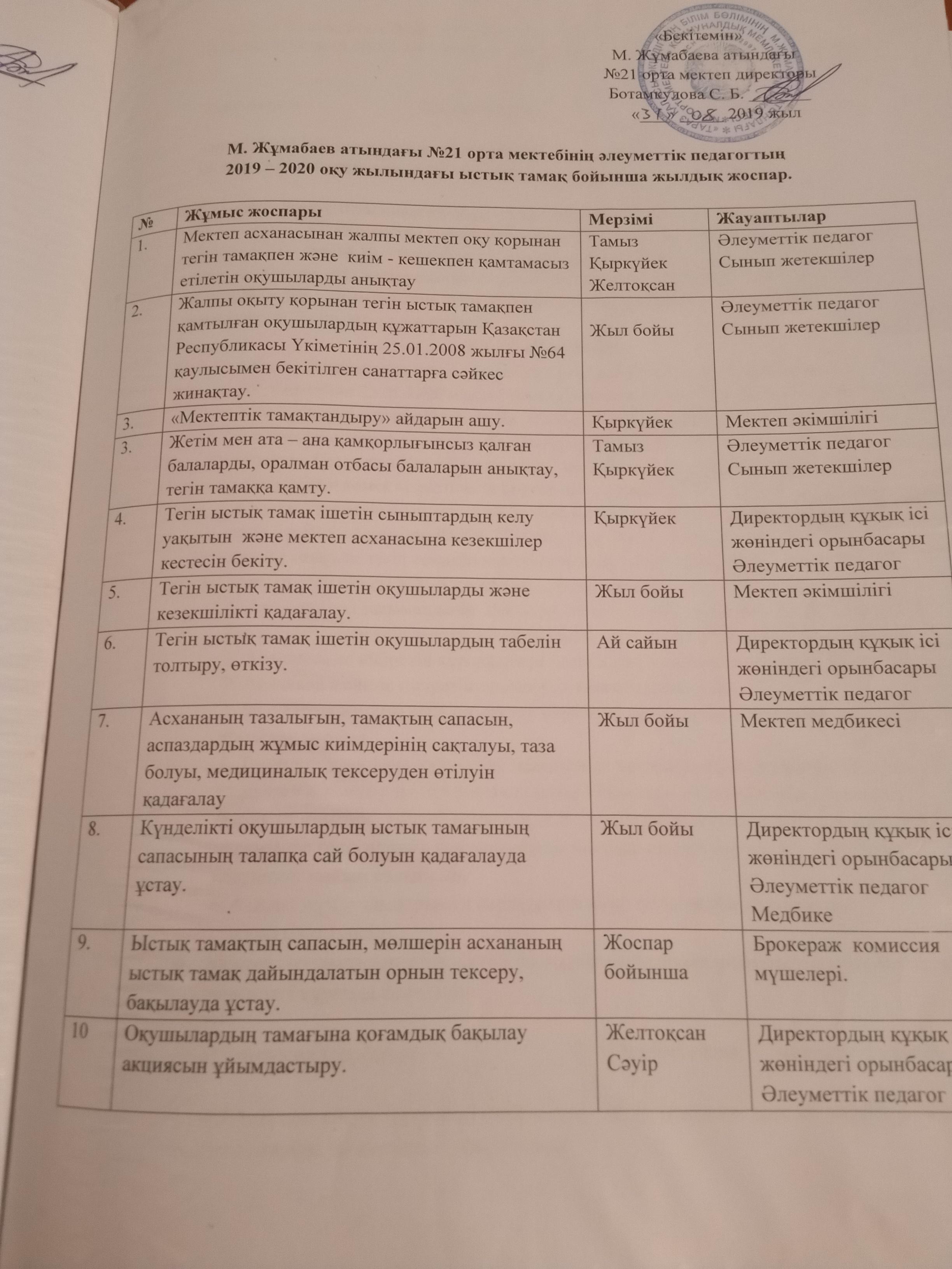 Тамақтандыру » Жамбыл облысы Тараз қаласы білім бөлімінің "Мағжан Жұмабаев атындағы № 21 орта мектеп" коммуналдық мемлекеттік мекемесі