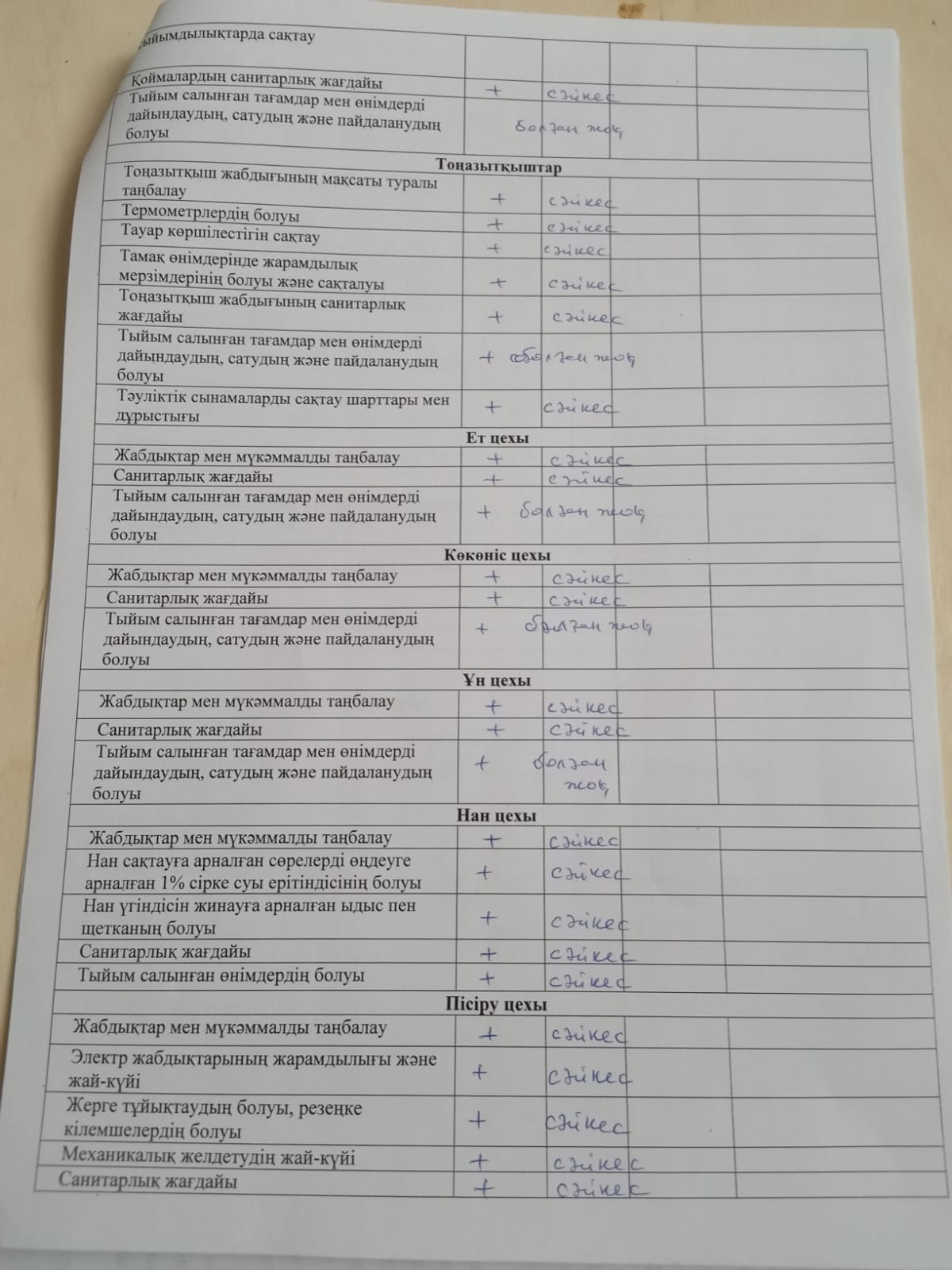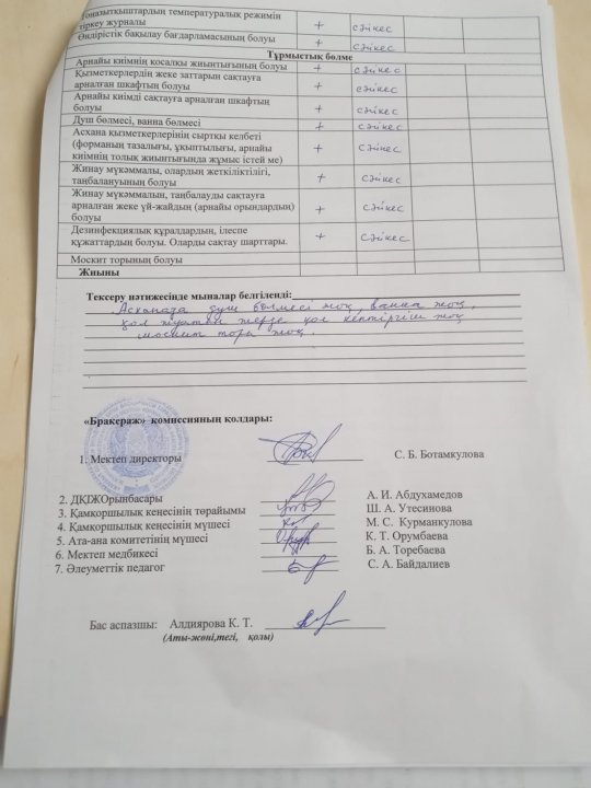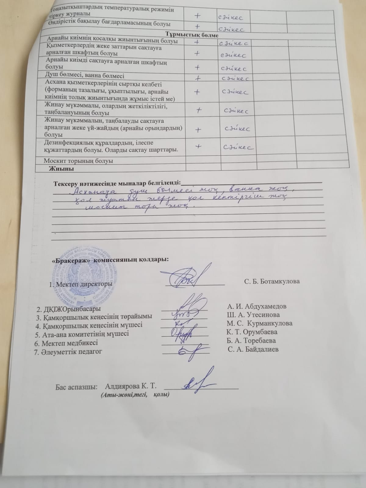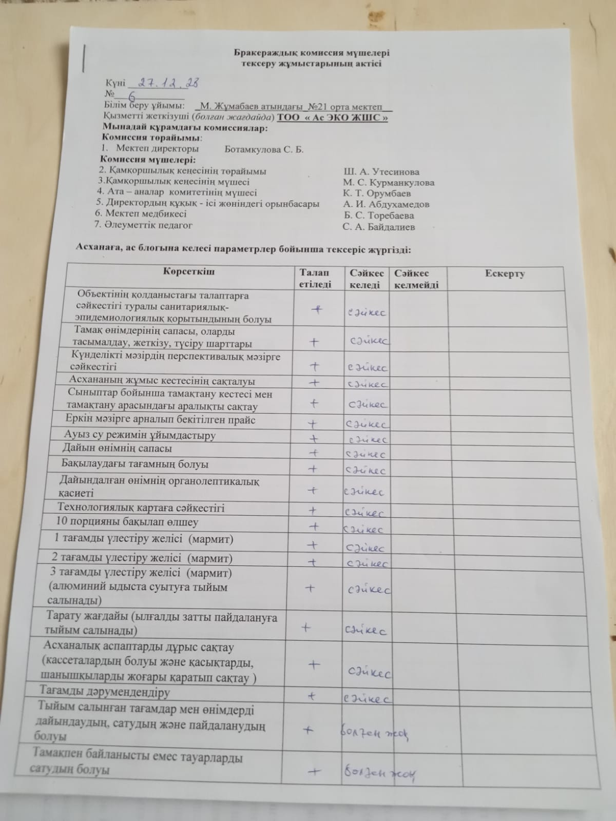 Бракераж комиссиясының тексеру жұмыстарының АКТ-сі » Жамбыл облысы Тараз қаласы білім бөлімінің "Мағжан Жұмабаев атындағы № 21 орта мектеп" коммуналдық мемлекеттік мекемесі