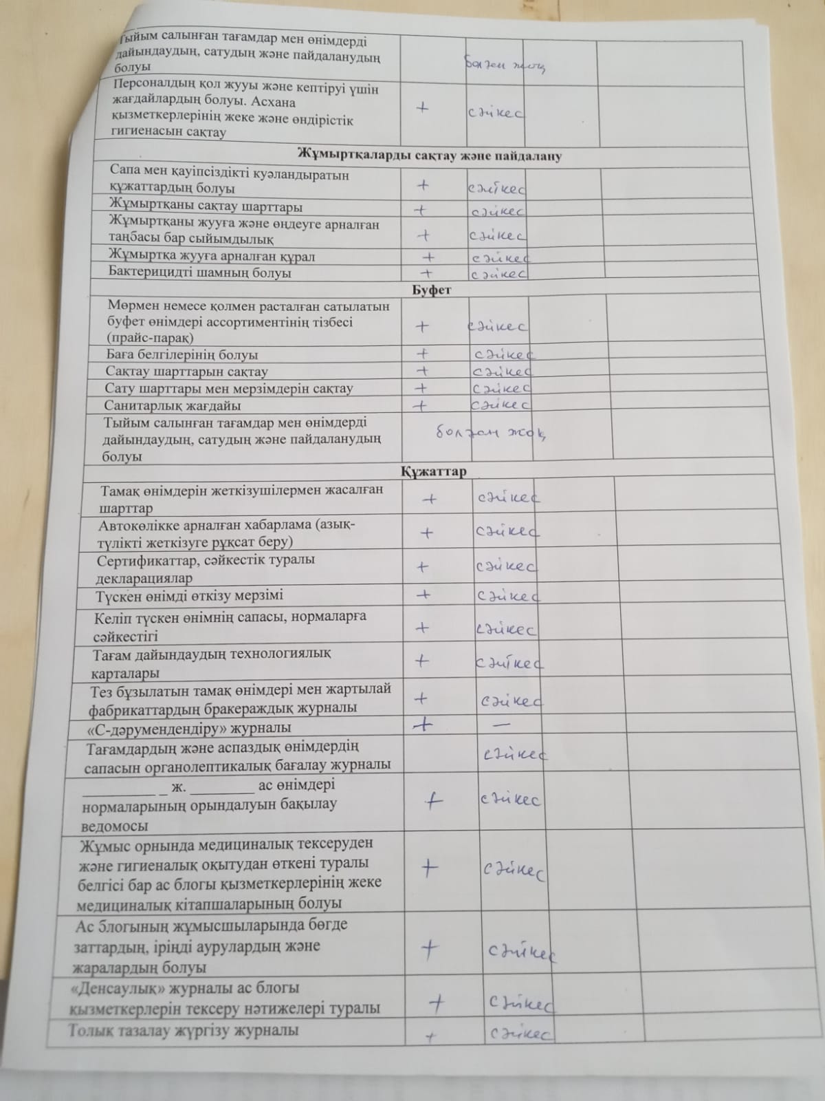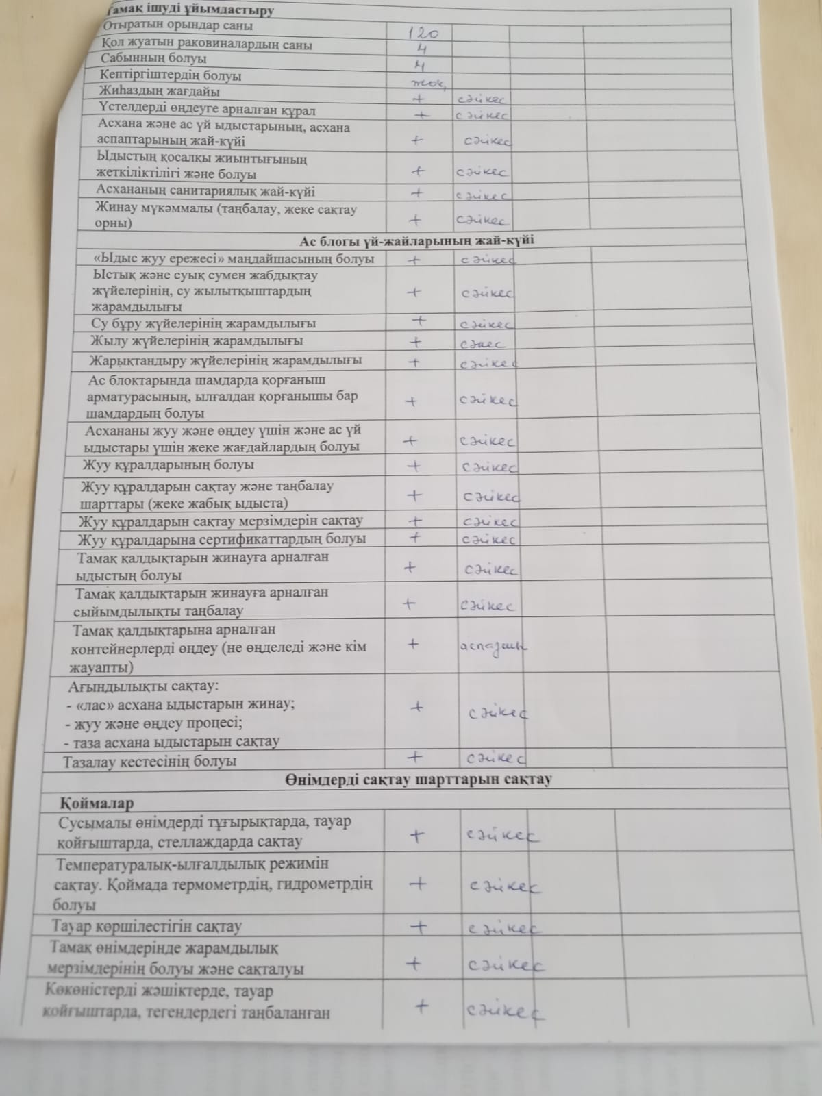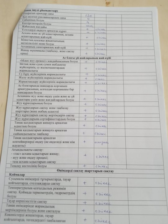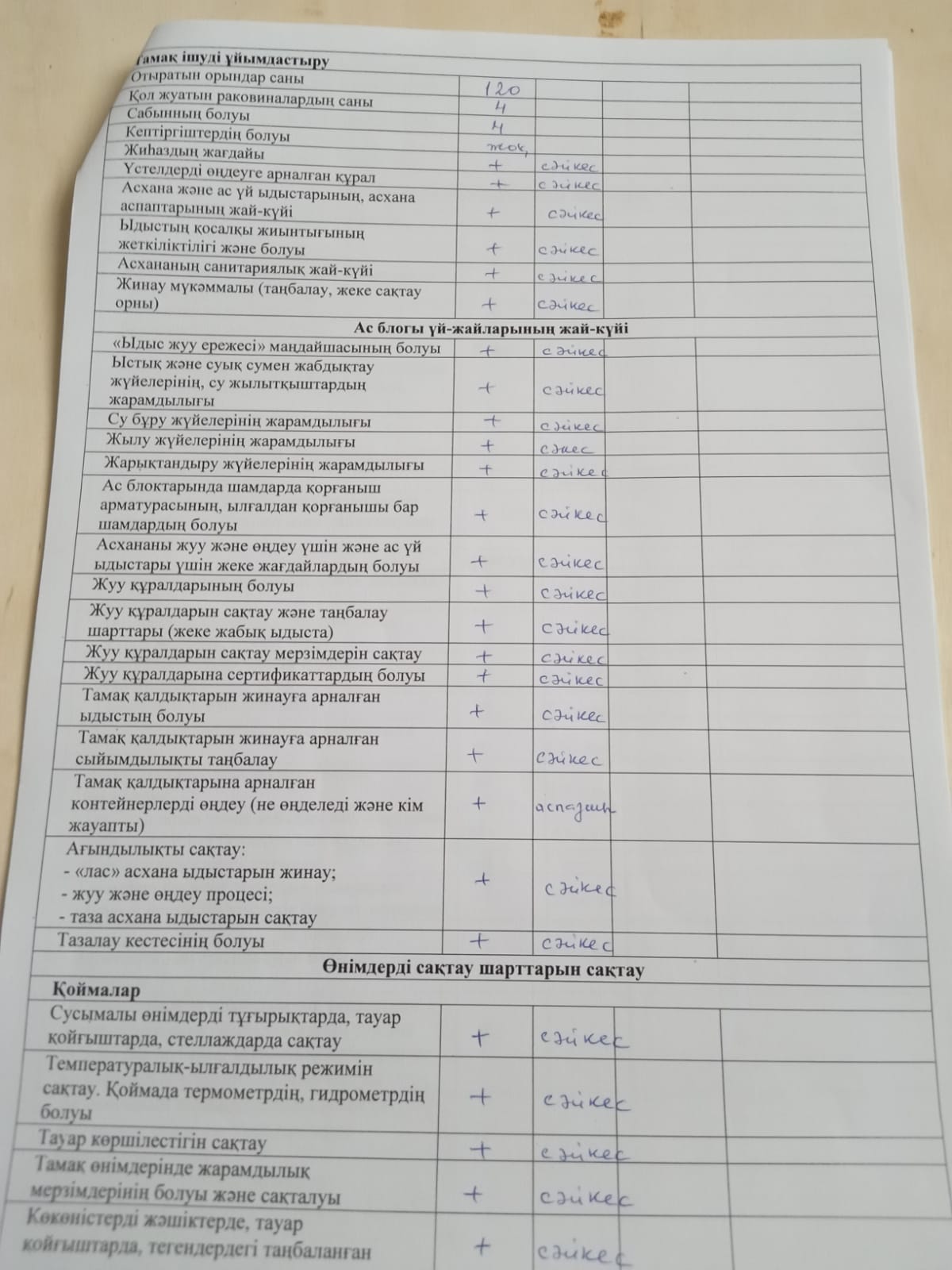 Бракераж комиссиясының тексеру жұмыстарының АКТ-сі » Жамбыл облысы Тараз қаласы білім бөлімінің "Мағжан Жұмабаев атындағы № 21 орта мектеп" коммуналдық мемлекеттік мекемесі