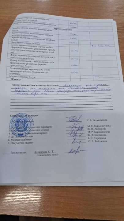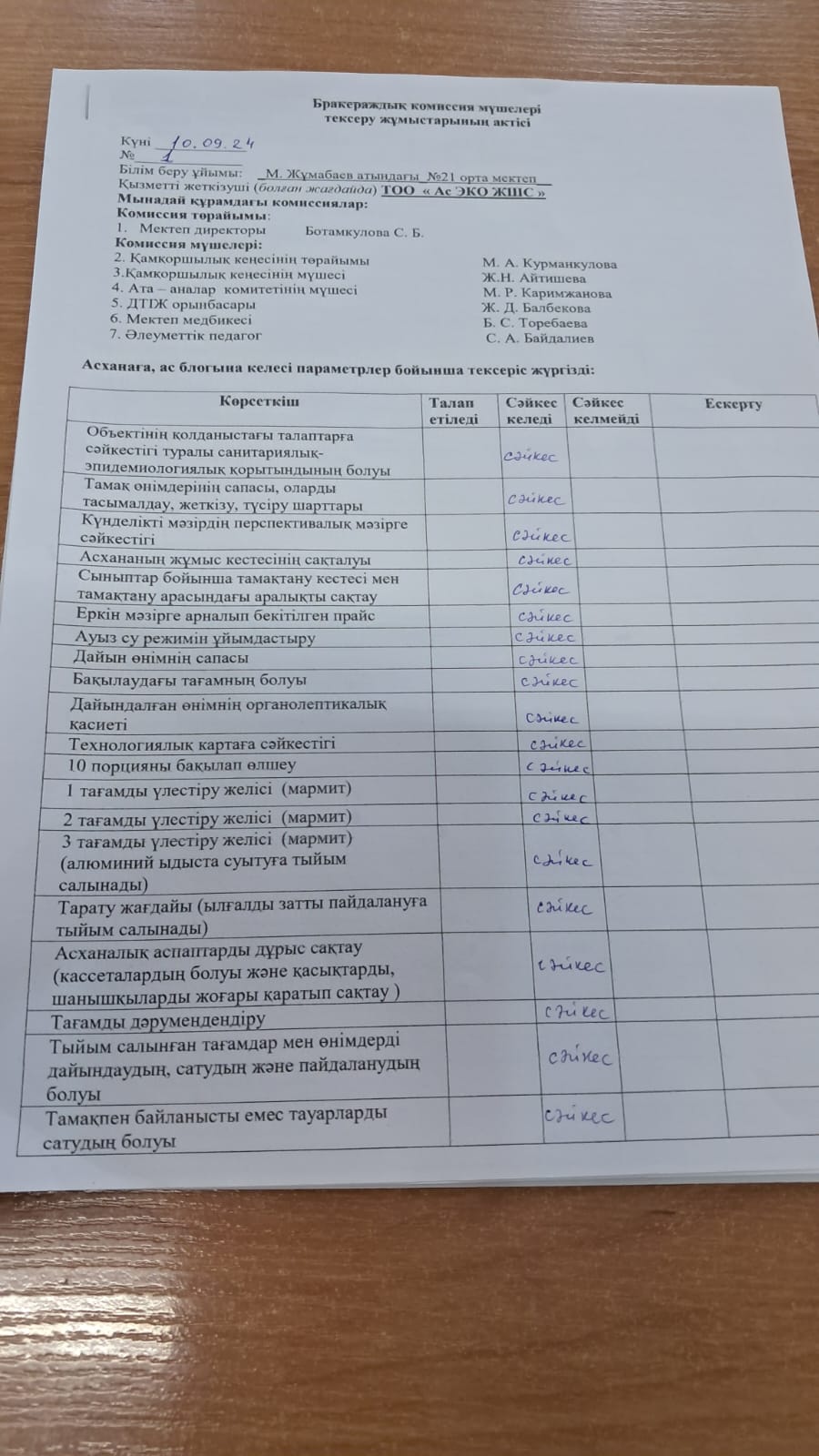 Бракераж комиссиясының тексеру АКТ сі » Жамбыл облысы Тараз қаласы білім бөлімінің "Мағжан Жұмабаев атындағы № 21 орта мектеп" коммуналдық мемлекеттік мекемесі