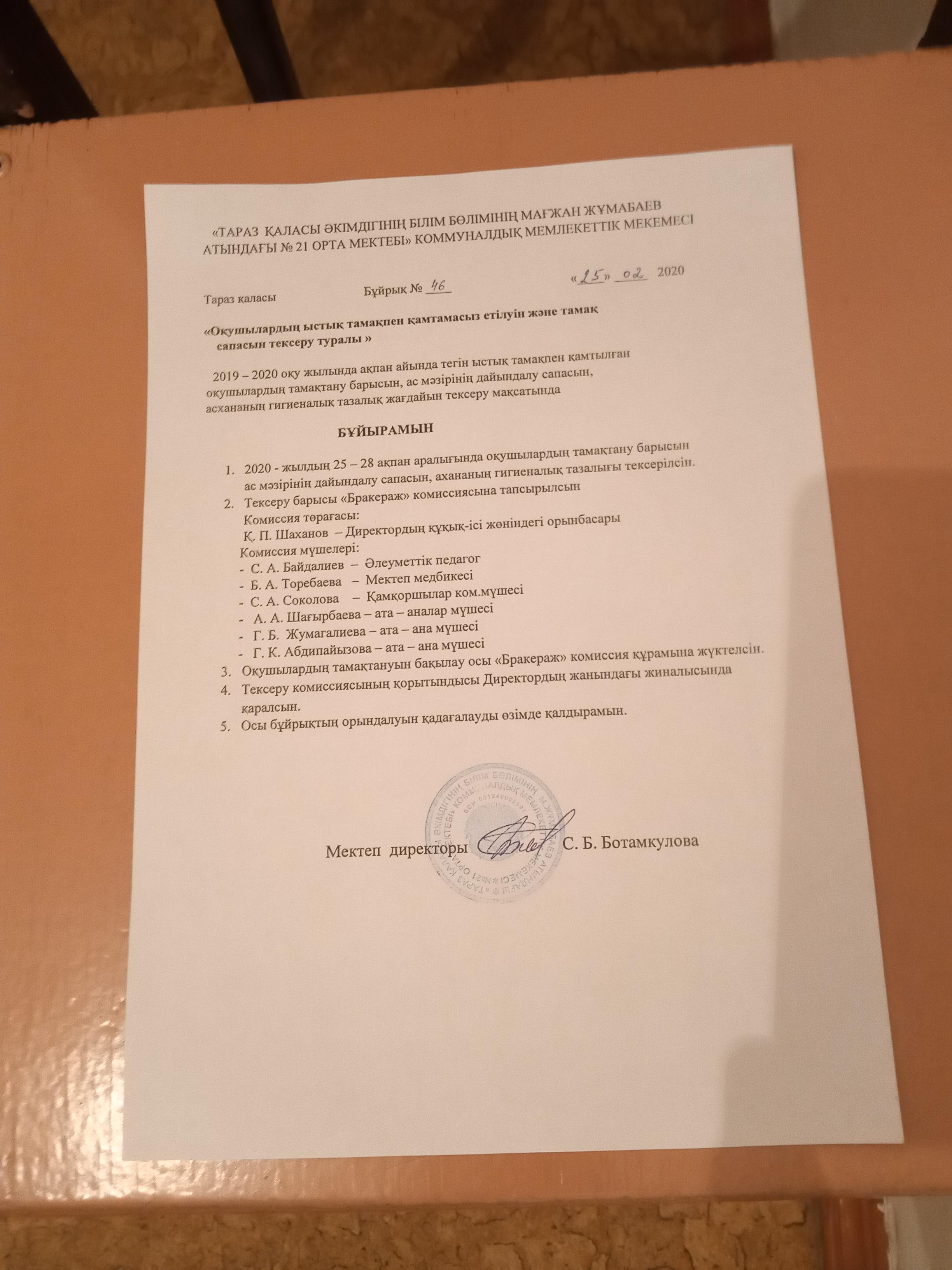 Тамақтандыру » Жамбыл облысы Тараз қаласы білім бөлімінің "Мағжан Жұмабаев атындағы № 21 орта мектеп" коммуналдық мемлекеттік мекемесі