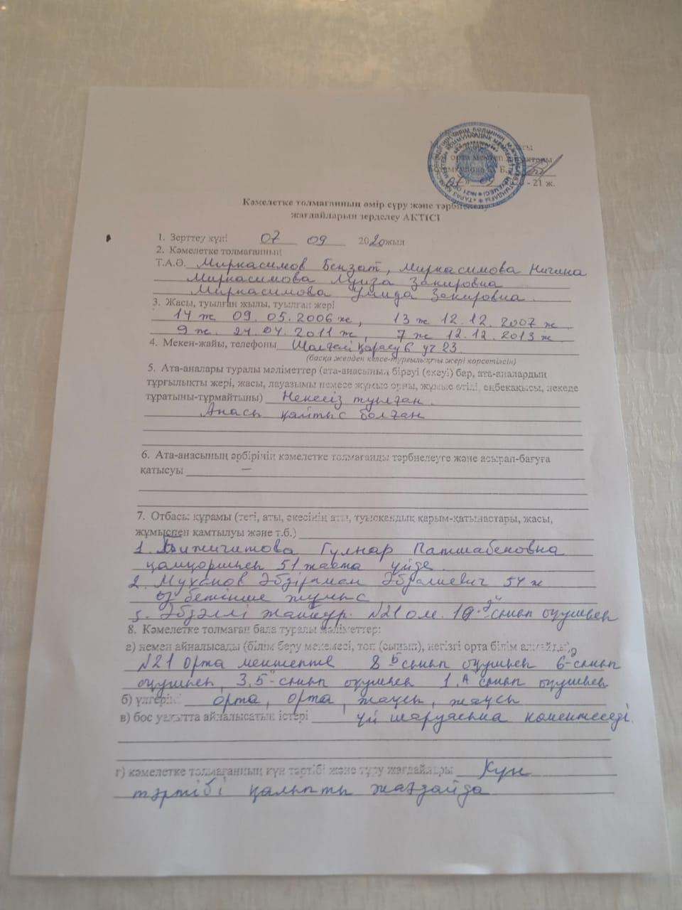 14 қыркүйек 2020 0 1 2 3 4 5 Ата-ана қамқорлығынсыз қалған және патронаттық тәрбиедегі оқушыларды зерделеу