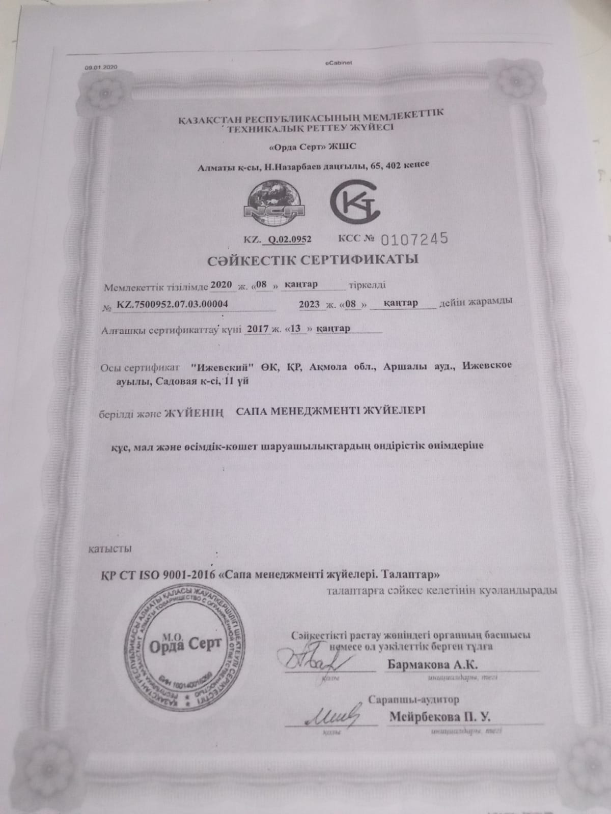Cәйкестік сертификат » Жамбыл облысы Тараз қаласы білім бөлімінің "Мағжан Жұмабаев атындағы № 21 орта мектеп" коммуналдық мемлекеттік мекемесі