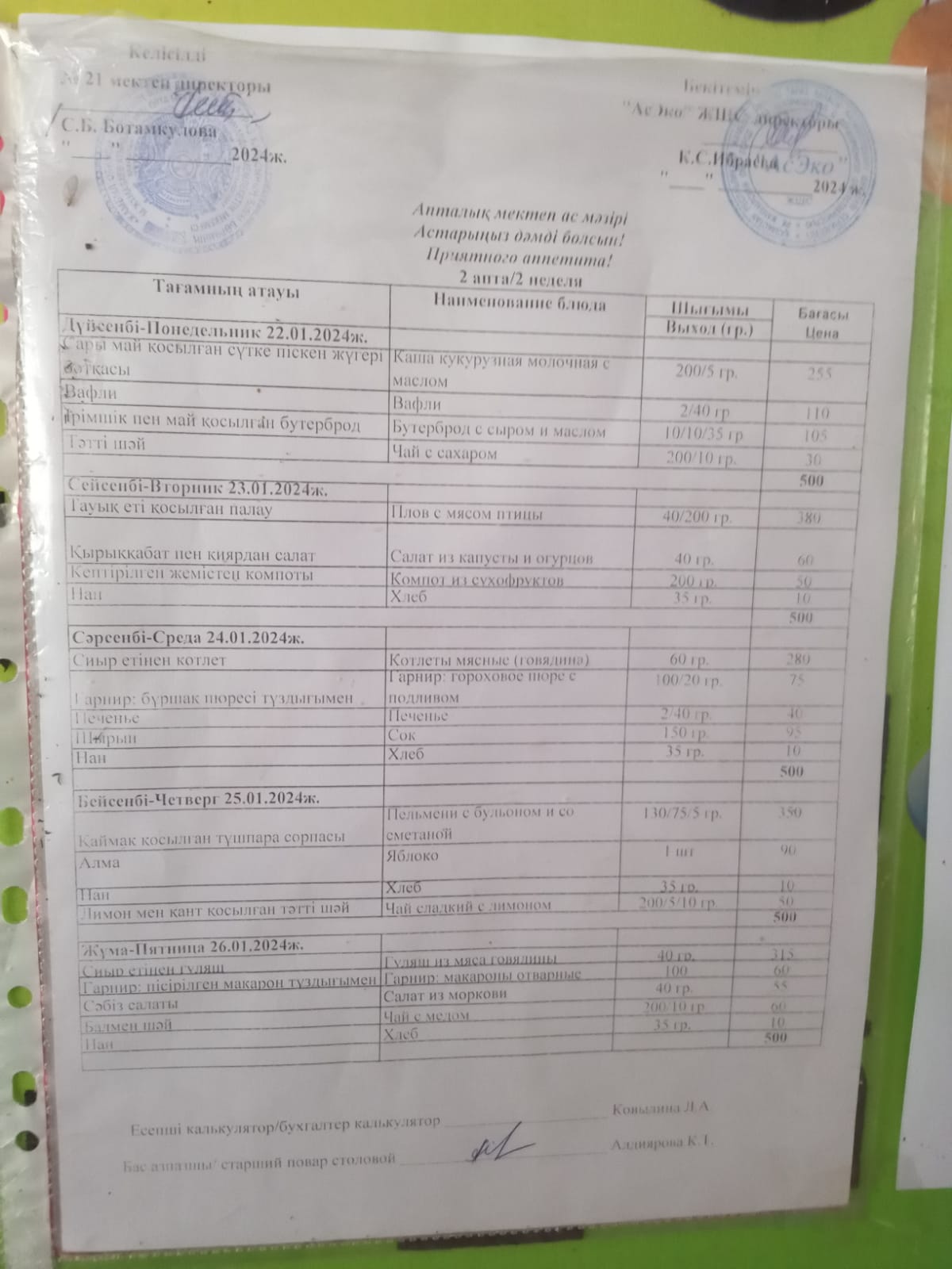 Апталық мектеп ас мәзірінің кестесі » Жамбыл облысы Тараз қаласы білім бөлімінің "Мағжан Жұмабаев атындағы № 21 орта мектеп" коммуналдық мемлекеттік мекемесі