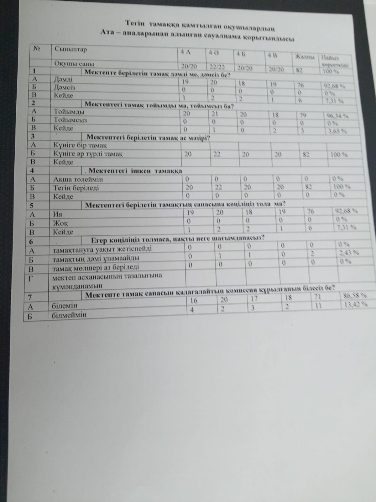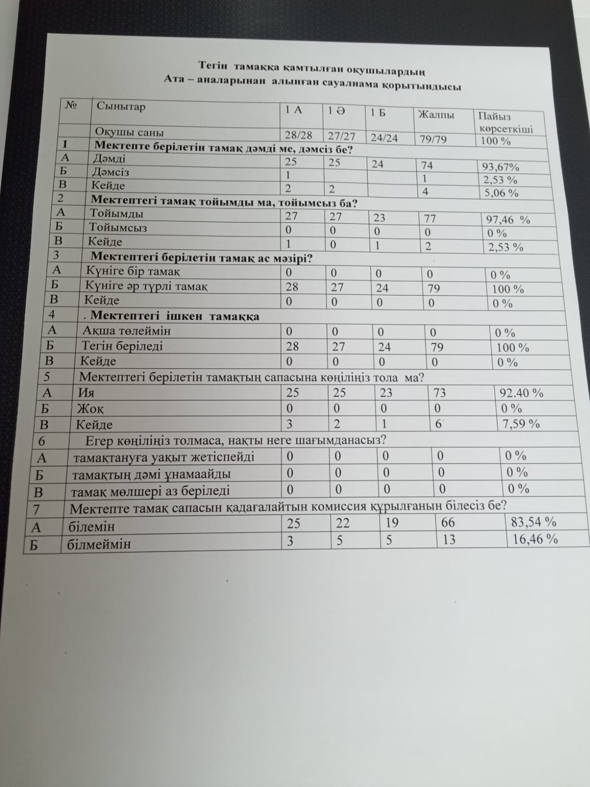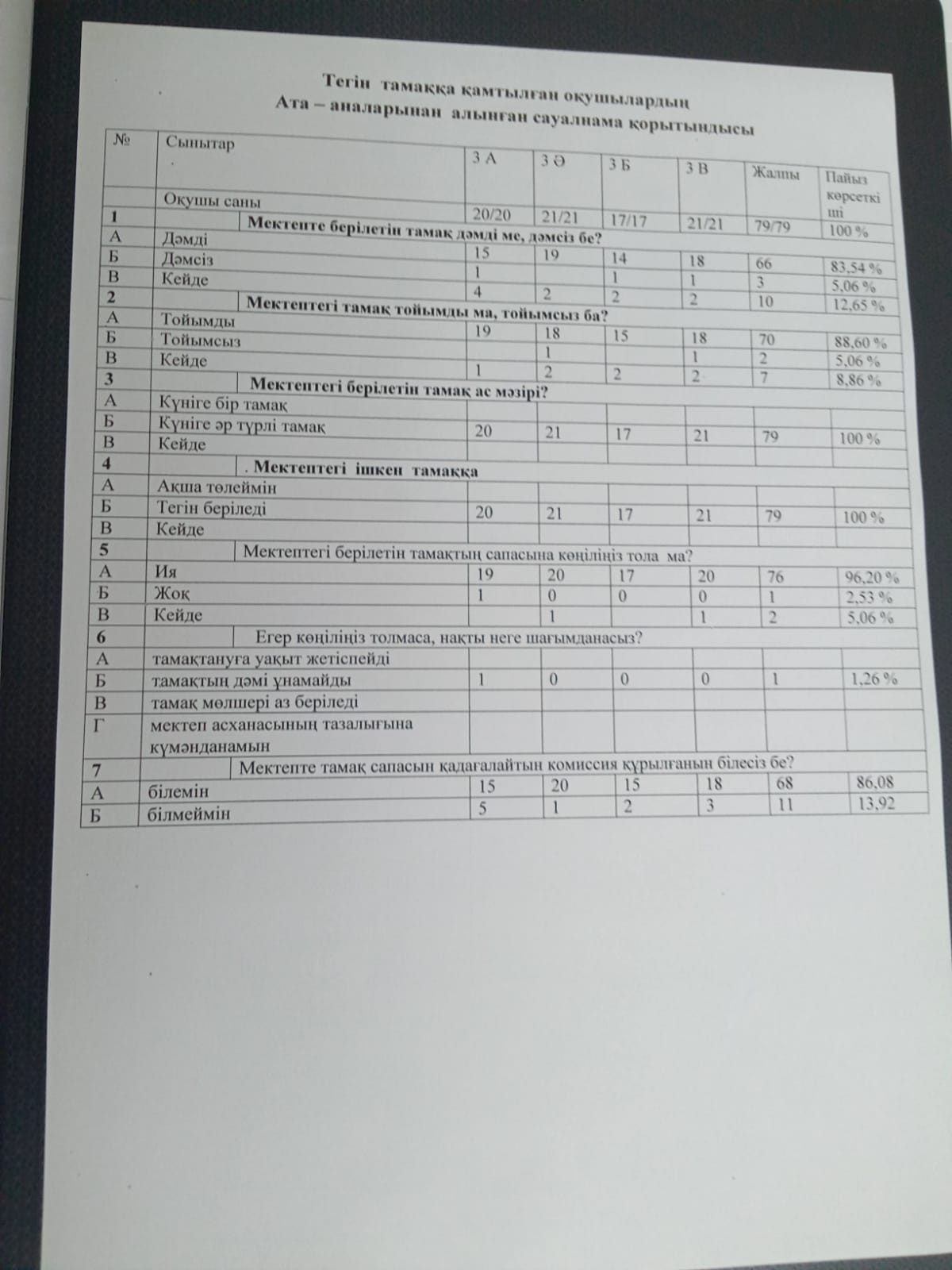 Ата аналардан алынған сауалнама корытындысы » Жамбыл облысы Тараз қаласы білім бөлімінің "Мағжан Жұмабаев атындағы № 21 орта мектеп" коммуналдық мемлекеттік мекемесі