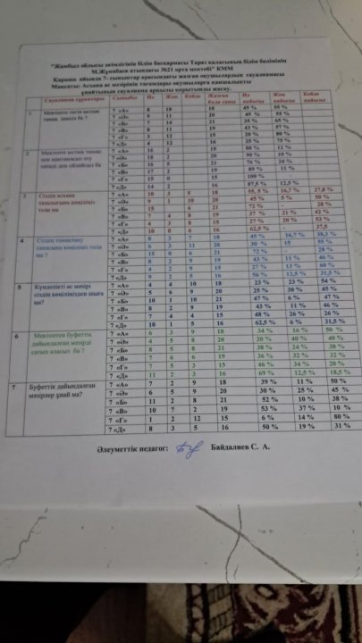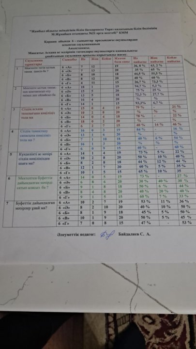 Асхана ас мәзірінің сауалнамасының қорытындысы » Жамбыл облысы Тараз қаласы білім бөлімінің "Мағжан Жұмабаев атындағы № 21 орта мектеп" управления образования акимата Жамбылской области