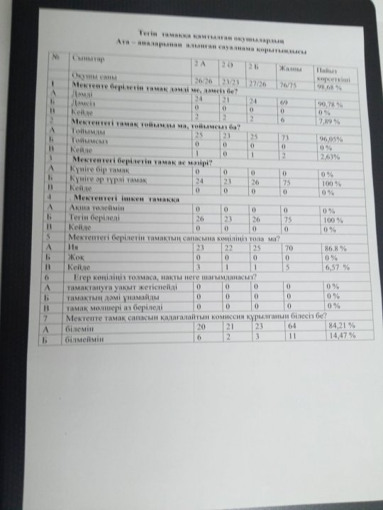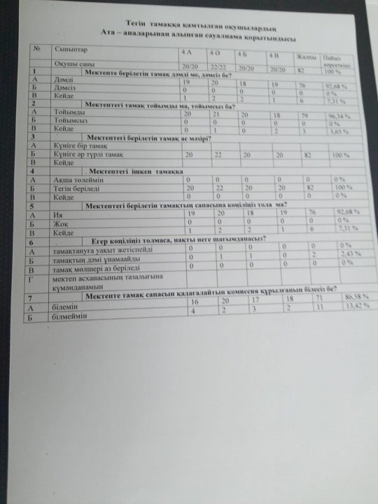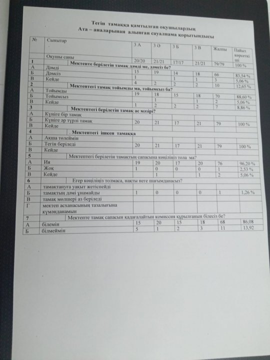 Ата аналардан алынған сауалнама корытындысы » Жамбыл облысы Тараз қаласы білім бөлімінің "Мағжан Жұмабаев атындағы № 21 орта мектеп" управления образования акимата Жамбылской области